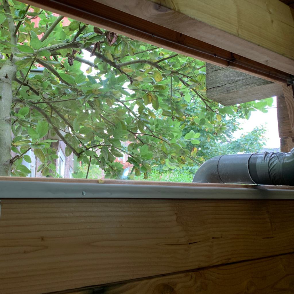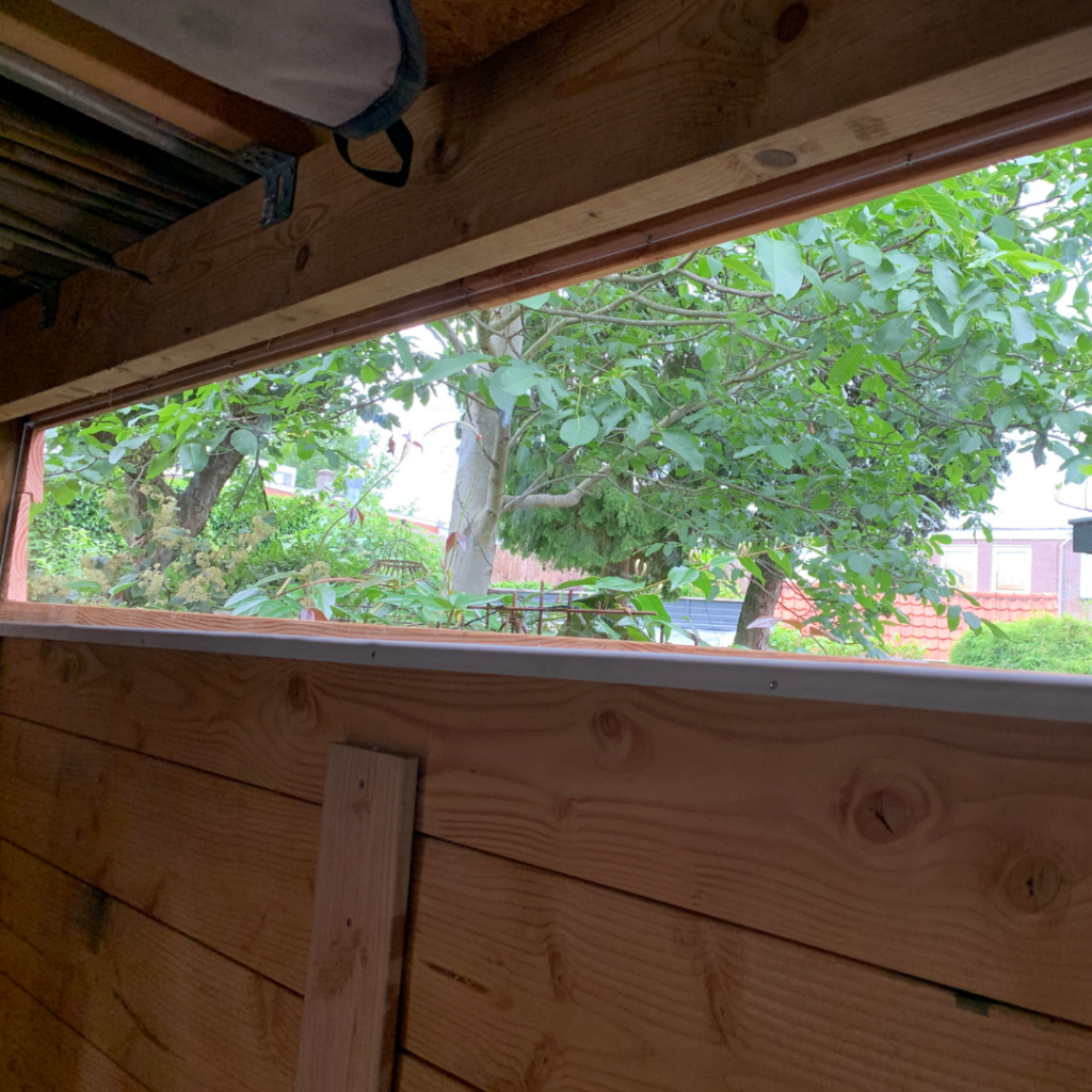 Walter took on the task of converting his carport by enclosing the sides, creating a genuine shed. To ensure a beautifully lit interior, he installed an acrylic skylight on top. “I made an opening in the skylight so that the drainpipe can pass through it, using a large hole saw and a milling machine,” Walter explains.